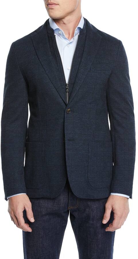 Corneliani Men S Knit Prince Of Wales Blazer Shopstyle
